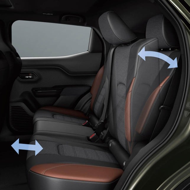 På bagsædet kan passagerer nyde godt af komfortable sæder med mulighed for at justere ryglænets hældning for optimal passagerkomfort. Bagsæderne kan også rykkes frem og tilbage (16 cm i 2 sektioner) for at give ekstra benplads eller mere plads i bagagerummet. Midt på bagsædet er der et armlæn med to kopholdere.