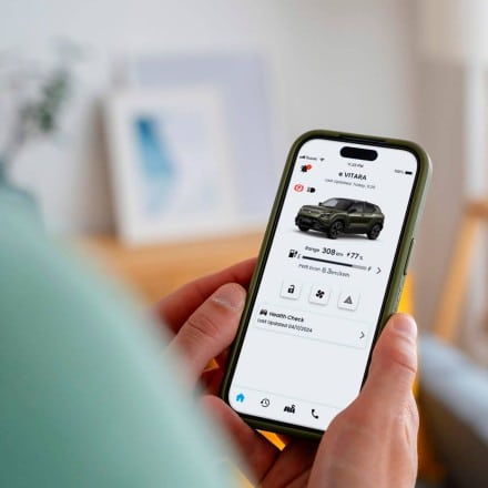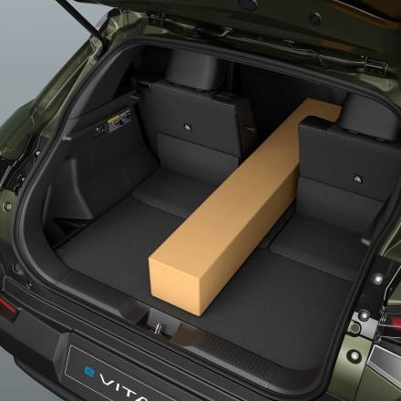 e VITARA har en rækkevidde på mellem 344 km og 426 km (WLTP-norm ved blandet kørsel), afhængig af batteristørrelse og udstyrsvariant.